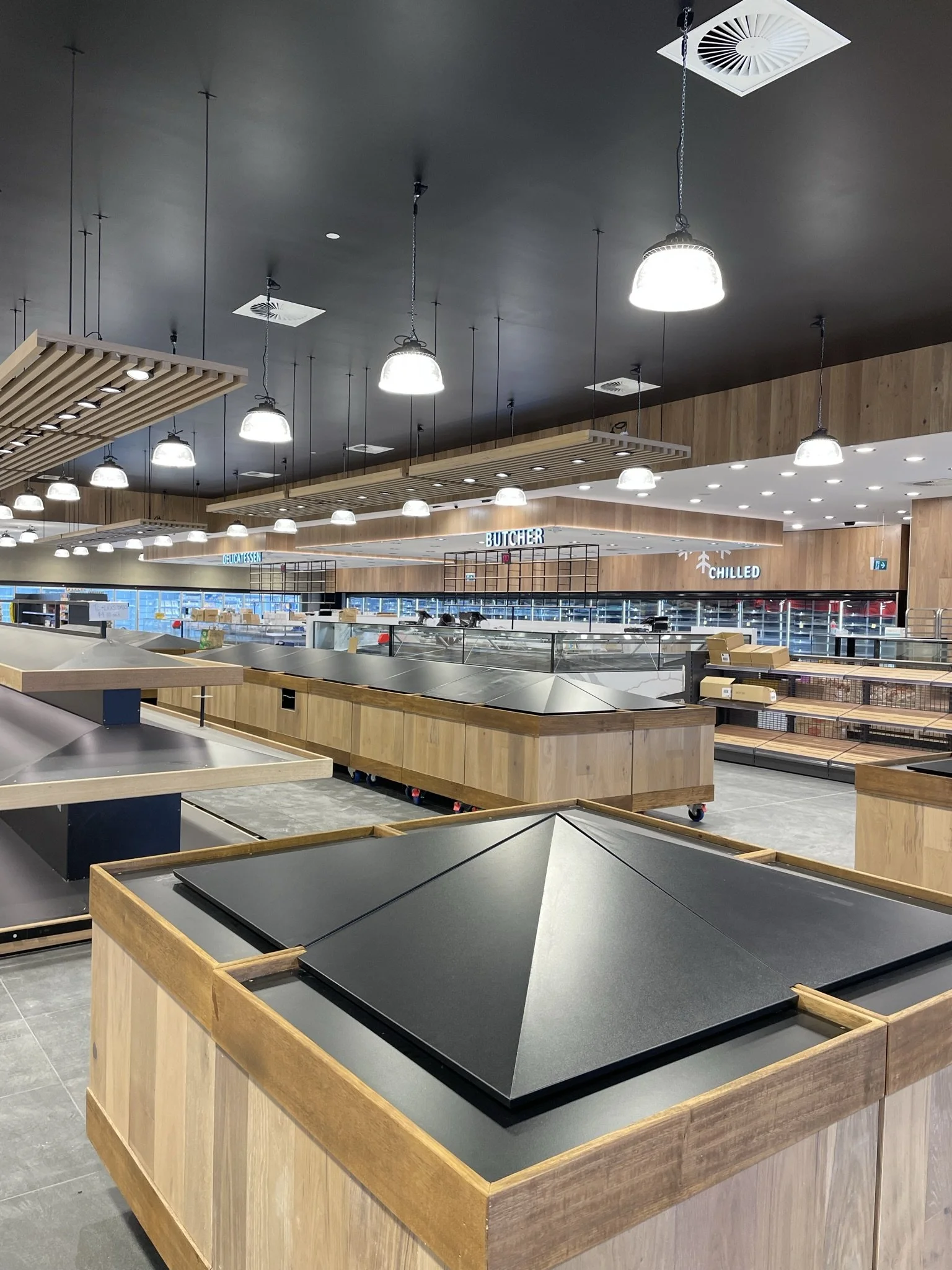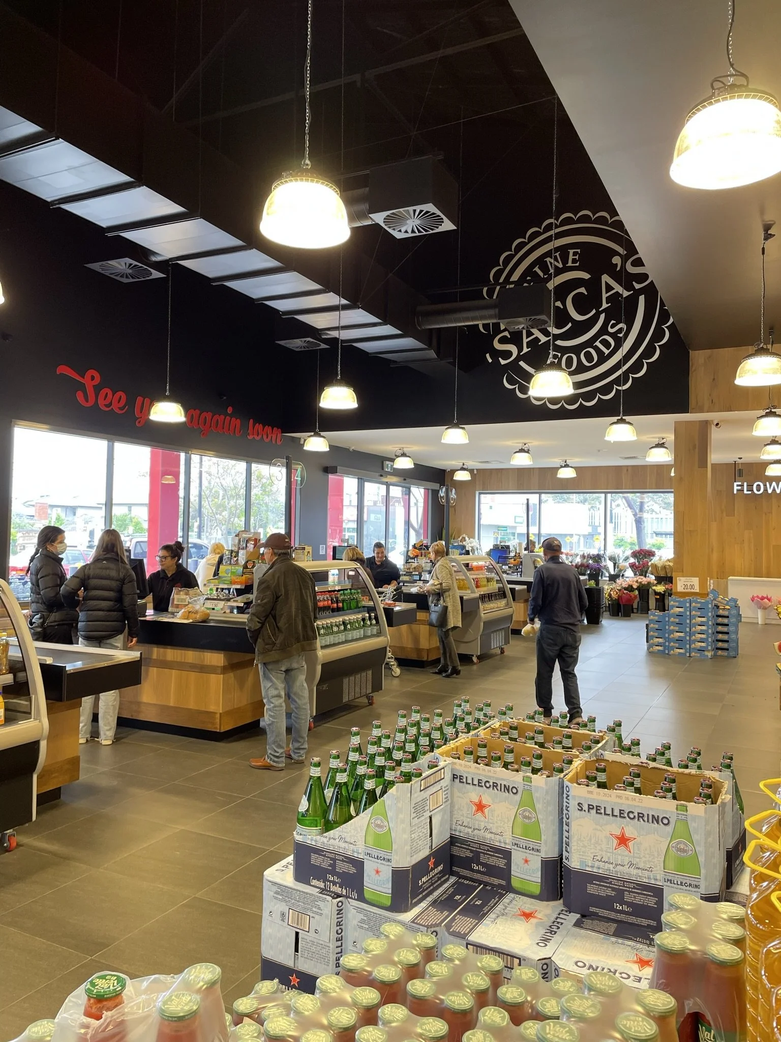 Sacca’s Fine Foods Coburg is one of seven store fit outs built for this longstanding client. Each project located in Airport West, Broadmeadows, Altona Gate, Braybrook, Eastland, Blackburn and now Coburg included a unique look and feel that is bespoke to the surroundings and the client requirements for each location, ensuring mass appeal to retail shoppers. The Coburg project consisted of a base building construction (Banco Group) and full shop fit-out incorporating custom built delicatessens, commercial style restaurant/café, fixed and mobile fruit display, point of sale registers, refrigeration, cool rooms, lighting and all back of house requirements.